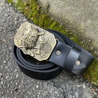 Schwarzer Herren-Ledergürtel mit Messing-Schnalle „Thors Hammer“ BB38
